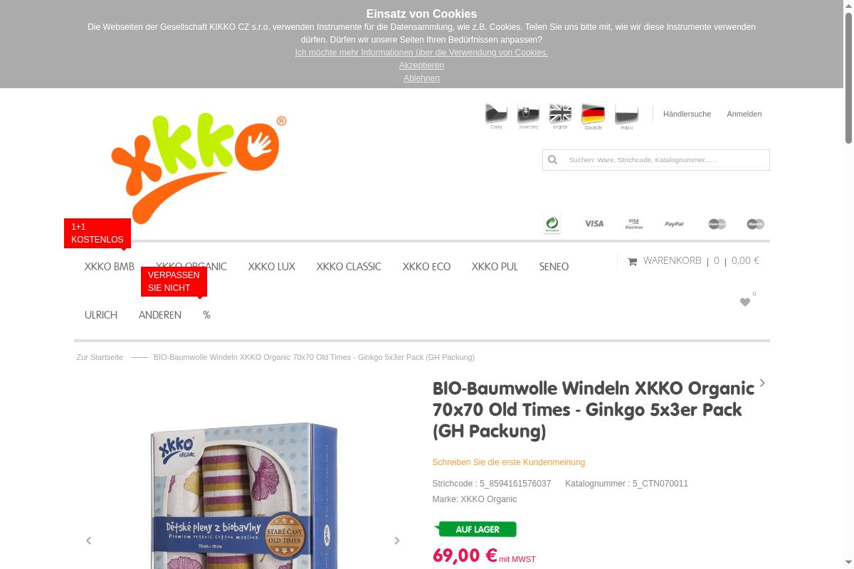 Wählen Sie BIO-Baumwolle Windeln XKKO Organic 70x70 Old Times - Ginkgo 5x3er Pack (GH Packung) zu günstigen Preisen mit sofortigem Versand.