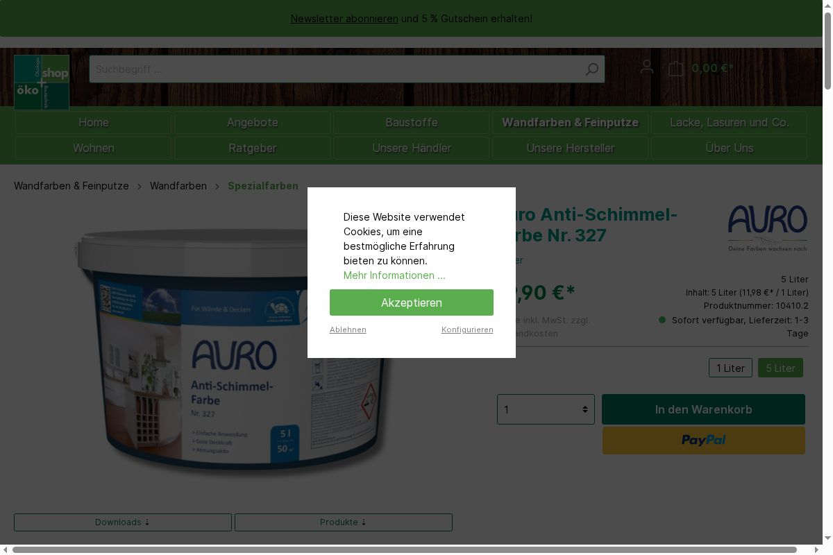 Auro Anti-Schimmel-Farbe Nr. 327 - emissionsfreie Innen-WandFarbe - schimmelhemmendem Effekt auf weißen Anstrichen