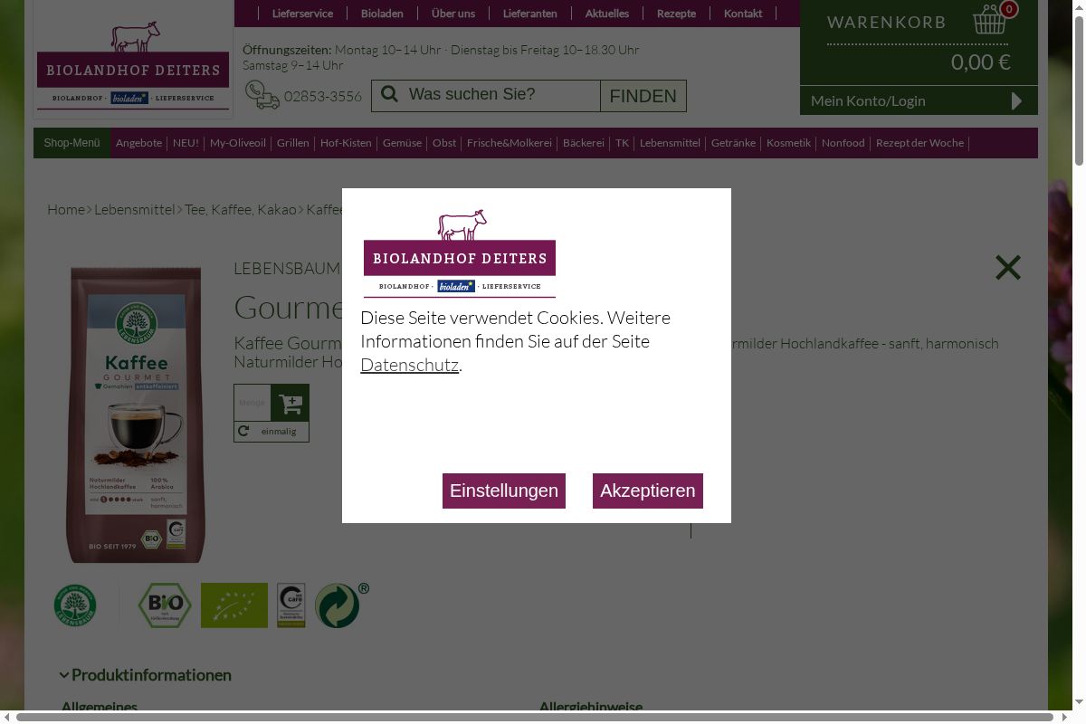 Gourmet Kaffee, entkoff, gem., 100% kbA BNN-Herst