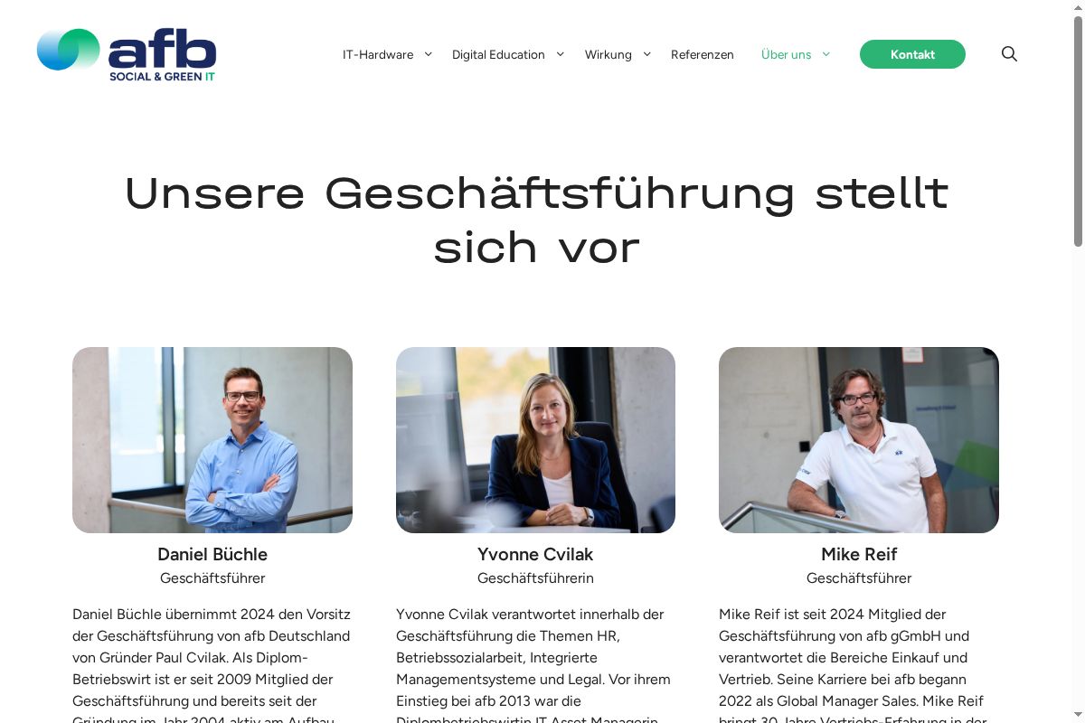 Die Geschäftsführung von afb stellt sich vor: Daniel Büchle, Yvonne Cvilak und Mike Reif geben Einblicke in ihren Werdegang.