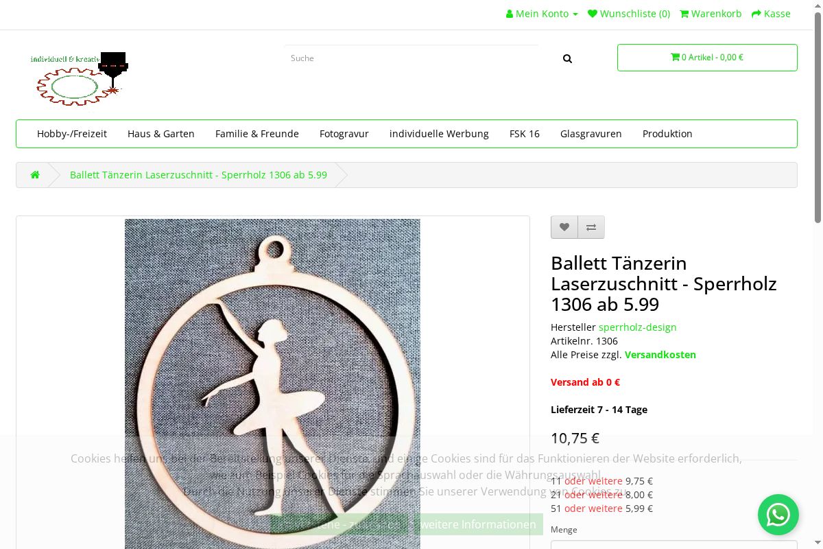 Diese wunderschöne Balletttänzerin aus Sperrholz (3mm stark) hat einen Durchmesser von etwa 18 cm und ist perfekt als dekoratives Element oder Werbegeschenk geeignet.
