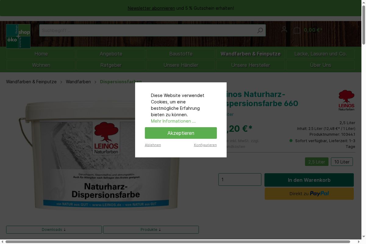 Leinos Naturharz-Dispersionsfarbe 660 - Geeignet fĂĽr weiĂź oder farbig deckende, diffusionsoffene Anstriche - Auf allen mineralischen UntergrĂĽnden oder Tapeten