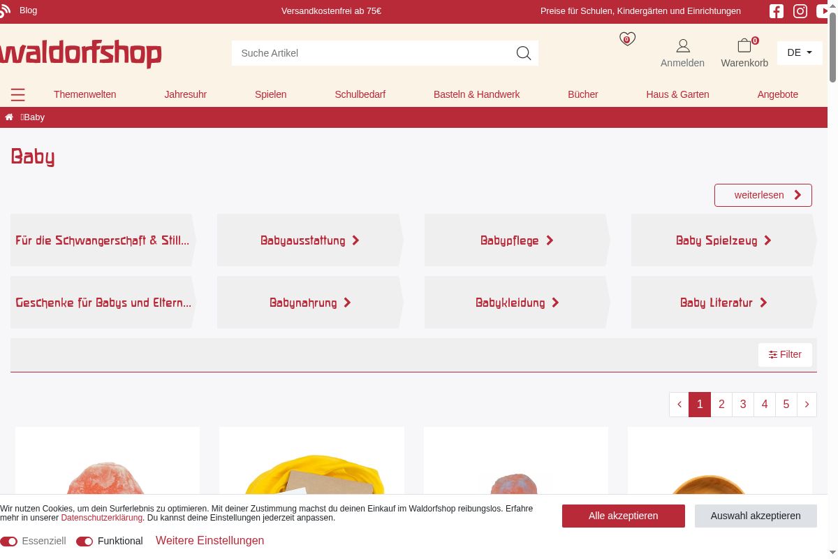 Viel Schönes und Nützliches für Babys - Spielzeug, Bernsteinketten, Kleidung, Wickel, Bücher, Geschenke finden Sie jetzt im Waldorfshop!