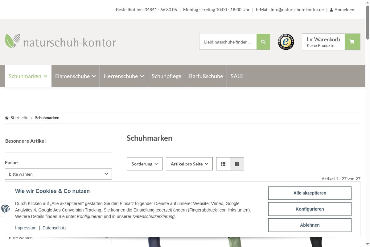 Bestellhotline: 04841 - 66 80 06 Montag - Freitag 10:00 - 18:00 Uhr E-Mail: info@naturschuh-kontor.de 0 Bitte fügen Sie mindestens zwei Artikel zur Vergleichsliste hinzu. Anmelden E-Mail-Adresse Passwort Anmelden Passwort vergessen Neu hier? Jetzt r
