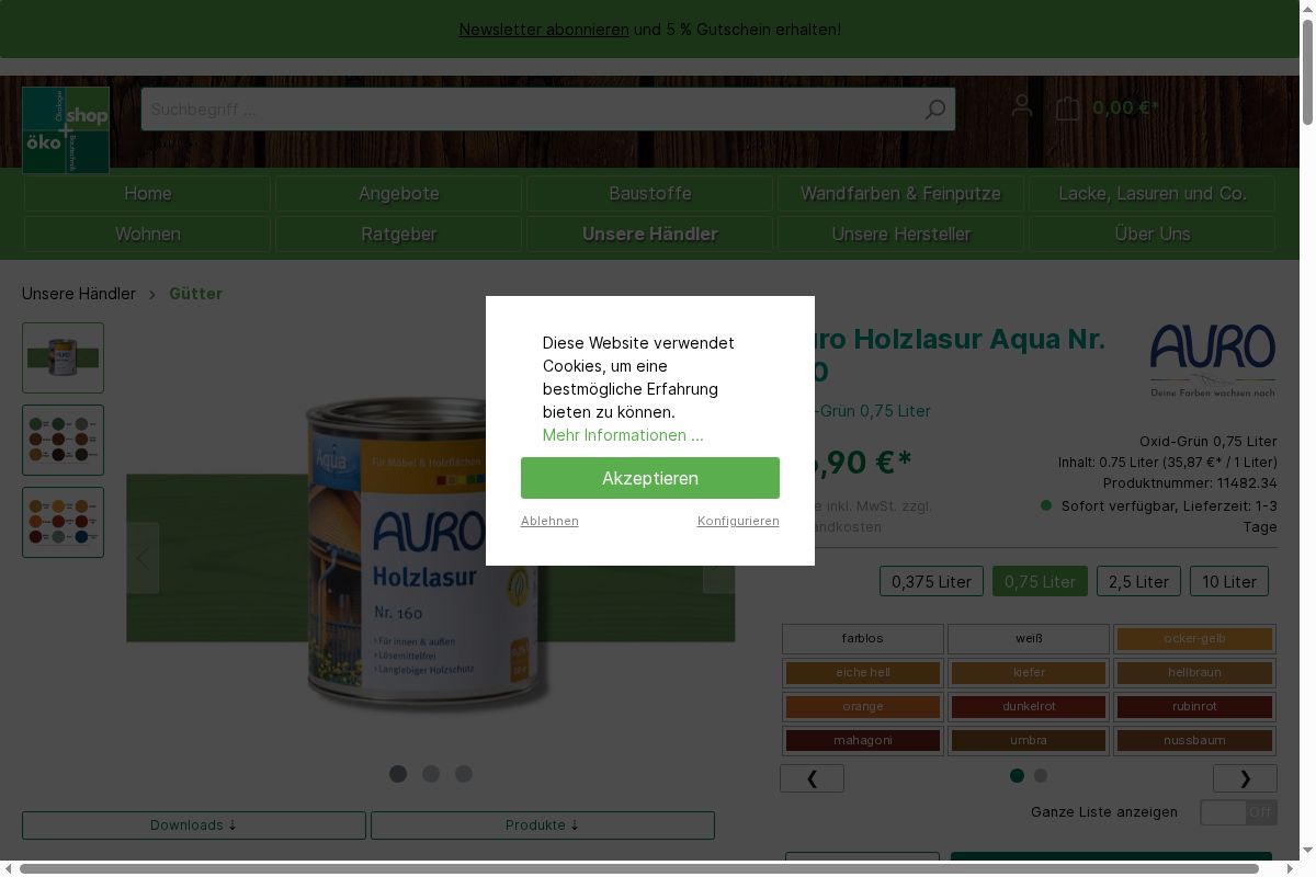 Auro Holzlasur Aqua Nr. 160 - Oxid-GrünUmweltfreundliche, vegane Lasur ohne Lösungsmittel - Zur transparenten Gestaltung & zum Schutz von Holz