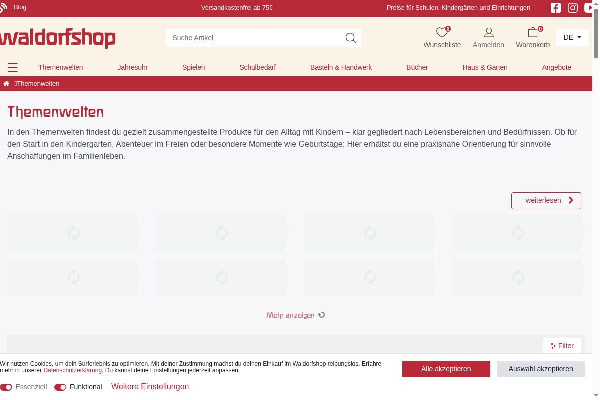 Klare Produktauswahl nach Alltagsthemen wie Kindergarten, Draußen & Geburtstag – praktisch & sinnvoll. Jetzt im Waldorfshop entdecken!