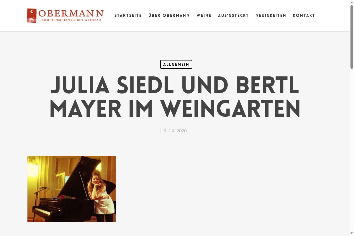 Startseite Ăśber Obermann Bioweinbau Weine Wein bestellen Aus’gsteckt Neuigkeiten Kontakt Allgemein Julia Siedl und Bertl Mayer im Weingarten By admin 11. Juli 2020 No Comments Sonntag, 12. Juli 2020 ab ca. 18 Uhr im Weingarten in der Reinischg