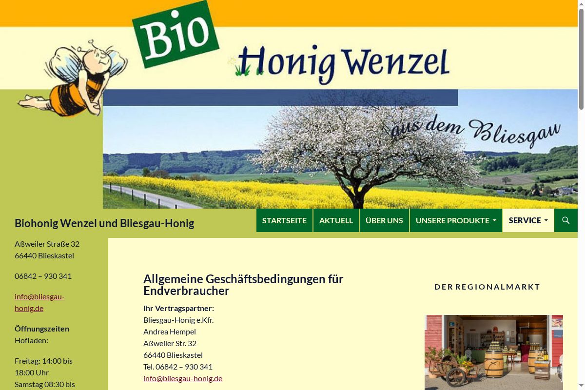 Biohonig Wenzel und Bliesgau-Honig Suchen Primäres Menü Zum Inhalt springen Startseite Aktuell Über uns Unsere Produkte Der Hofladen Service Kontakt Impressum AGB Widerrufsbelehrung Datenschutz Cookie-Richtlinie (EU) Suche nach: Allgemeine Geschäfts