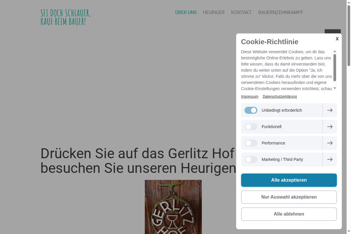 SEI DOCH SCHLAUER, KAUF BEIM BAUER! ber Uns Heuriger Kontakt Bauernzehnkampf ber Uns Drcken Sie auf das Gerlitz Hof Logo und besuchen Sie unseren Heurigen virtuell. Bauernzehnkampf Unser Betrieb Der Betrieb wird in fnfter Generation vonKatharina und